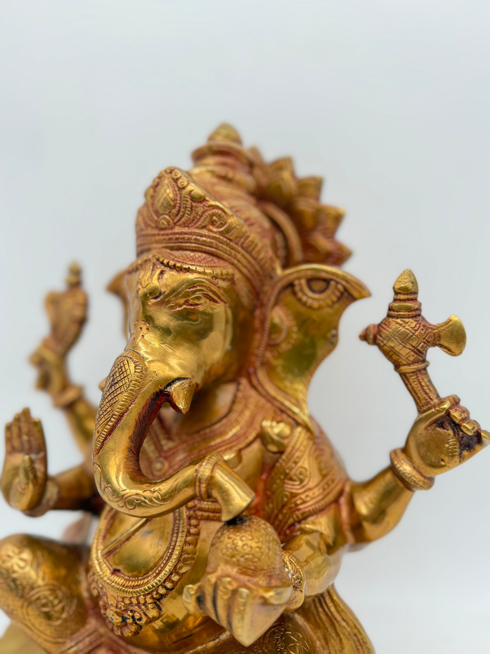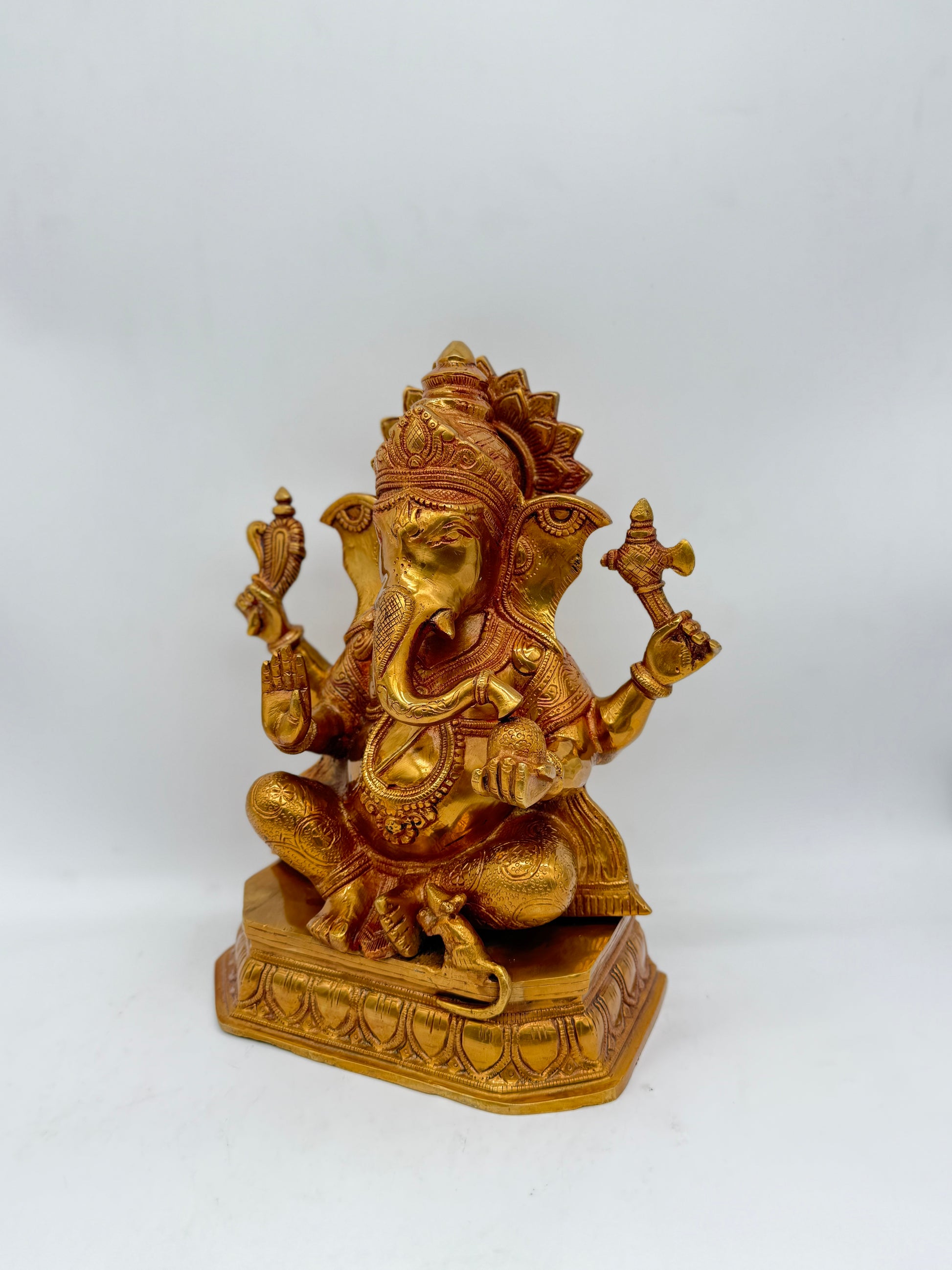 Symbolizing the sacred red of abir, this four-armed Ganesha is a living invocation of transformation, devotion, and bold beginnings.