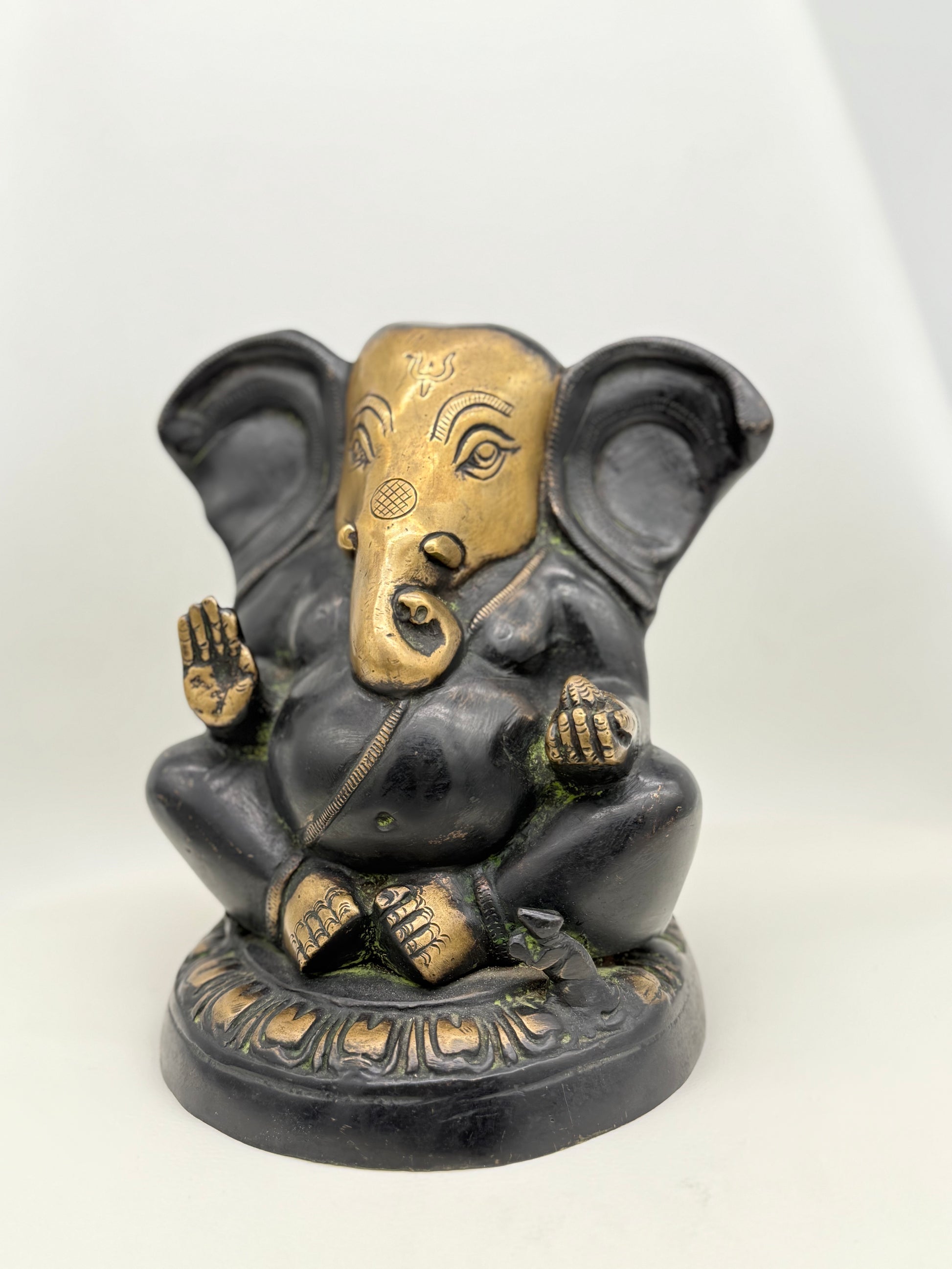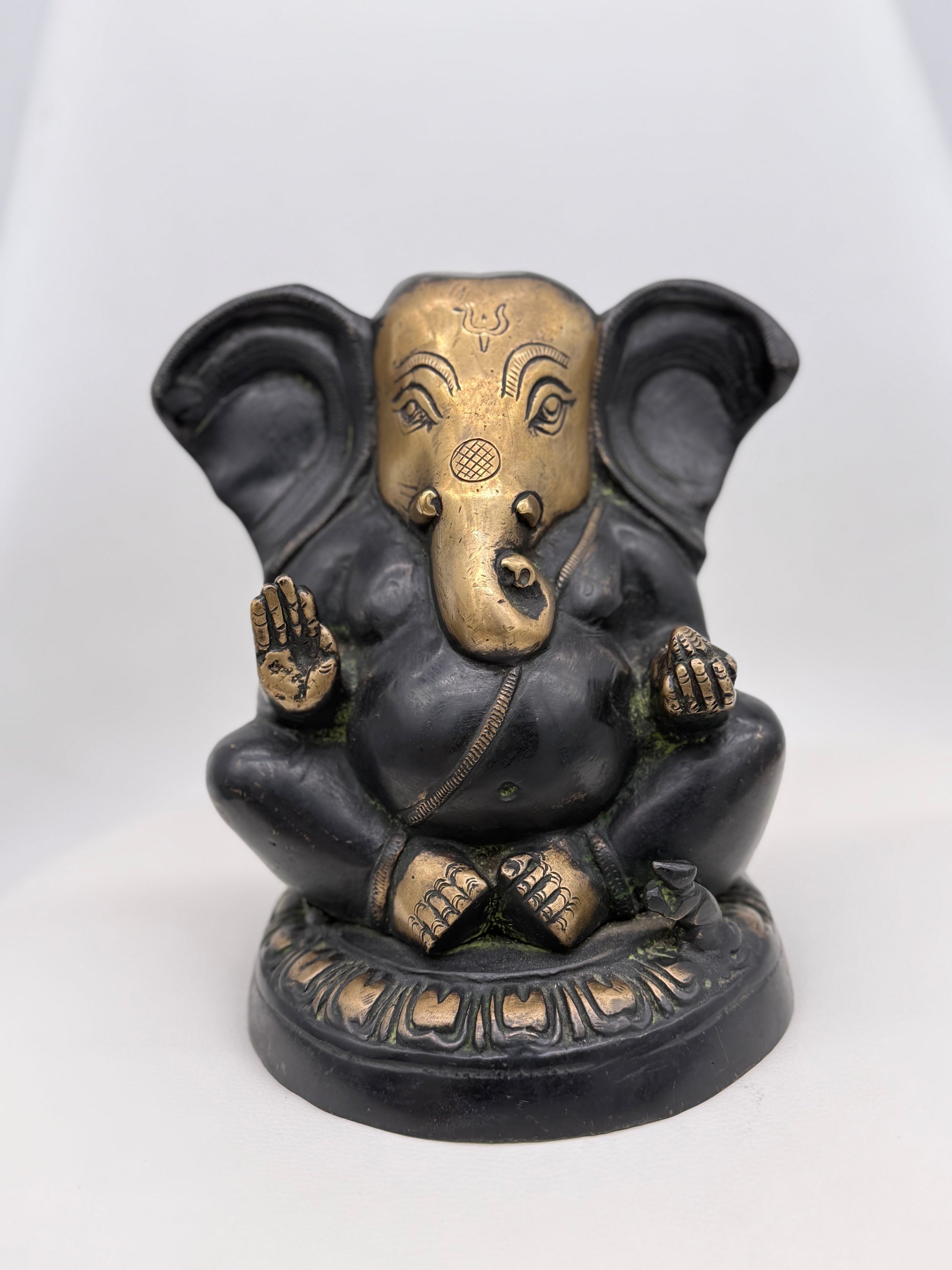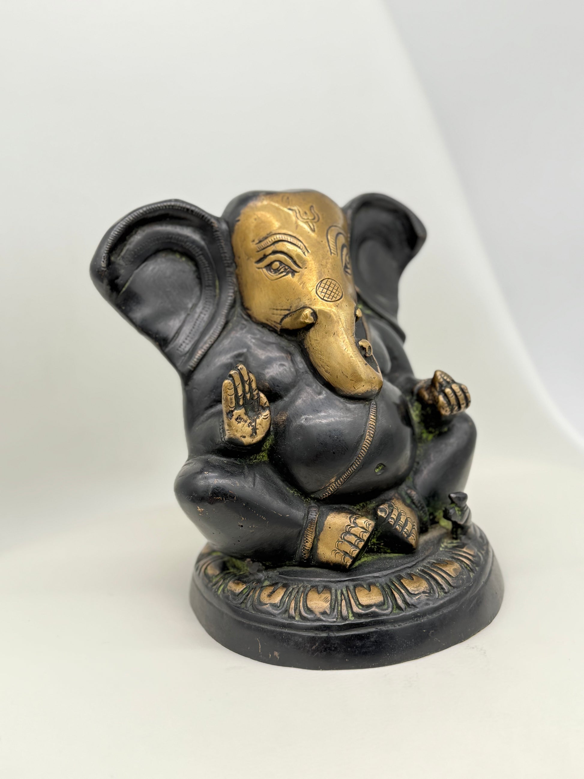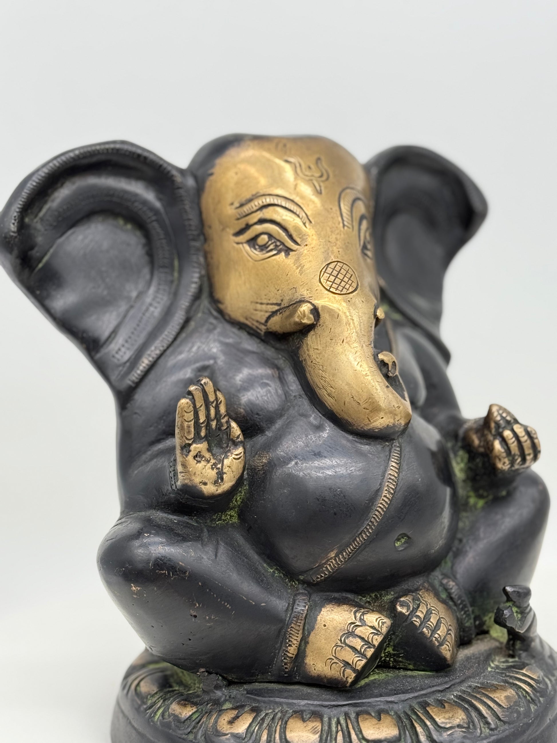 In many traditions, the color black symbolizes protection, depth, and grounding. This Ganesha, carved in matte black stone, is often placed at entryways or in meditation spaces to absorb negative energy, anchor calm, and support inner stability. Stripped of excess detailing, the form feels elemental, a bold silhouette that honors the divine through simplicity.