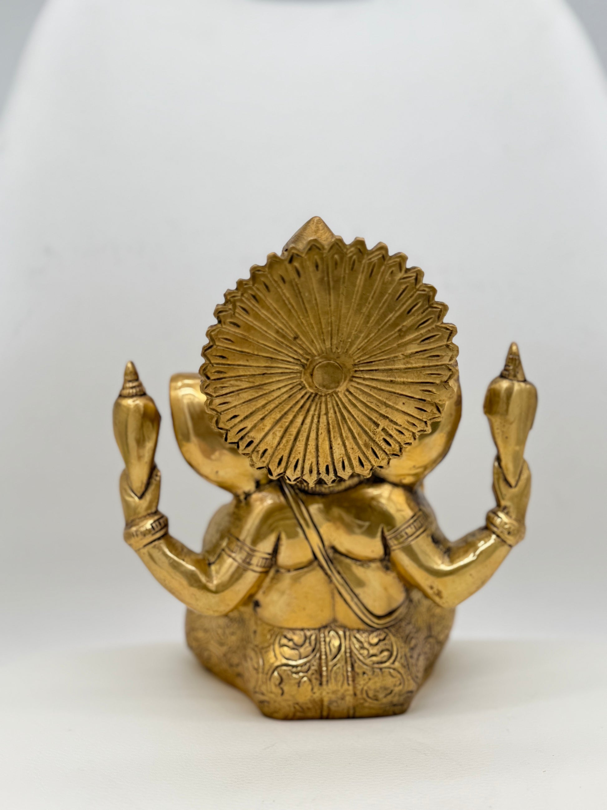 This brass sculpture depicts Ganesha in a calm, seated posture with four arms, each symbolizing divine guidance and protection. His large ears remind us to listen more. His small eyes reflect the power of focused attention. The rounded belly symbolizes the ability to peacefully hold life’s ups and downs, while his gentle expression radiates patience and wisdom.